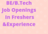 BE/B.Tech Jobs Openings – Freshers to Experience